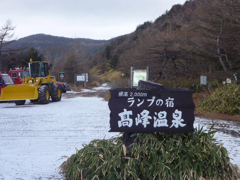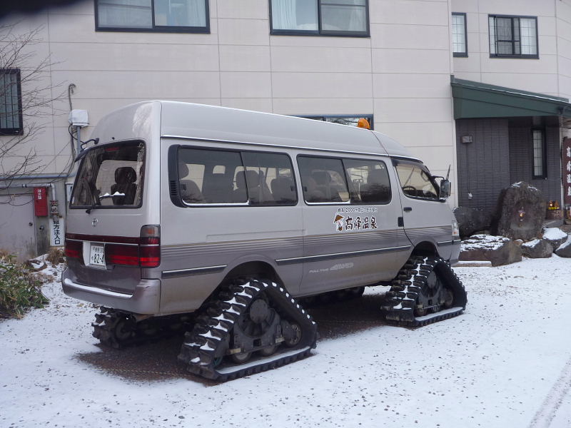 冬季の高峰温泉までの唯一の輸送手段の雪上車 スキー場から往復 入浴料込みで1500円 現在はまだ雪がなく、出動準備中