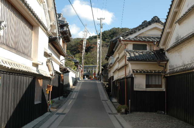 吉良町 昔のしっくいの蔵が残る町並み。おりしも祭の日