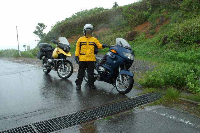 | 毛無峠から分水嶺沿いに長野県側の上信スカイラインを走ると知らず知らずのうちに標高1899mの分水界を越えて群馬県側へ。まもなく万座峠。上信スカイラインは峠を越えずにそのまま万座スキー場を横切り万座温泉へ下る。 |