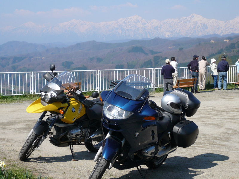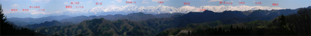 長野県上水内郡小川村稲丘のアルプス展望広場 (鬼無里より県道36号線で南方約5km)から北アルプス連山を望む |