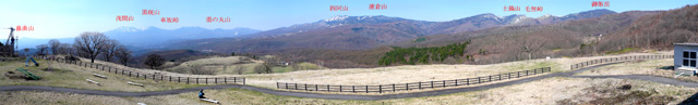 パノラマ写真もクリックすると大きな写真になります。 大きいパノラマ写真はパソコンの画面の幅よりずっと大きい(3200ピクセル)ので画面下のカーソルを動かして全景をお楽しみください。 ソニー Picture Gear の「パノラマメーカー」で合成し、Adobe Photoshopで文字を記入しました。