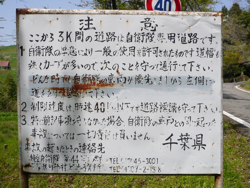 | 自衛隊駐屯地から国道410線までは自衛隊専用道路 |