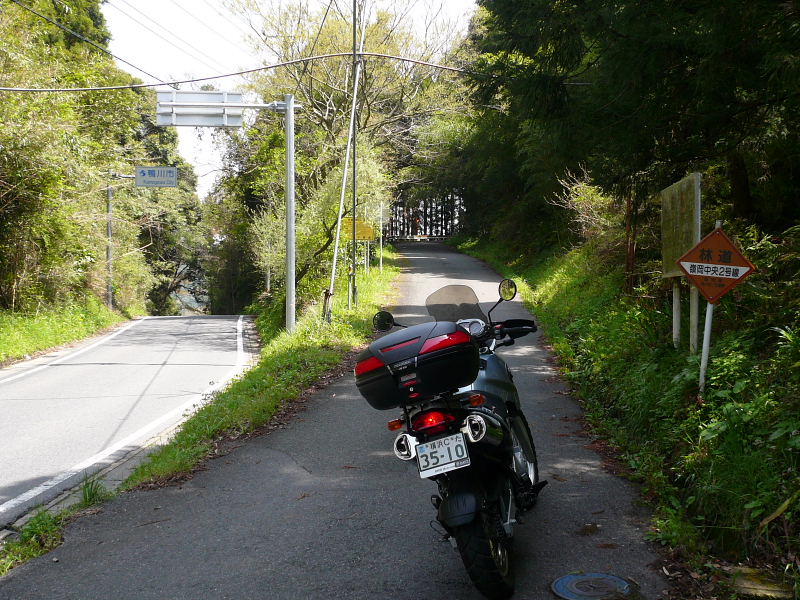 万田野林道の起点から出て県道160号線を少し走り音信(おとずれ)山林道へ入る |