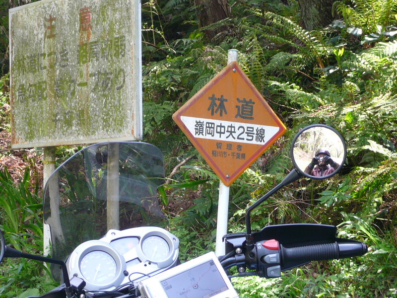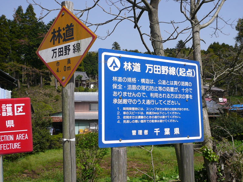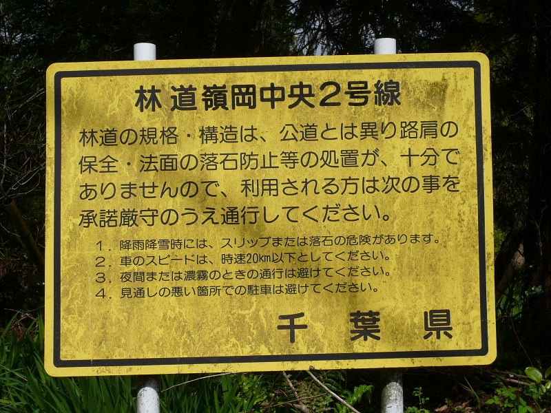 林道走行の注意看板 |