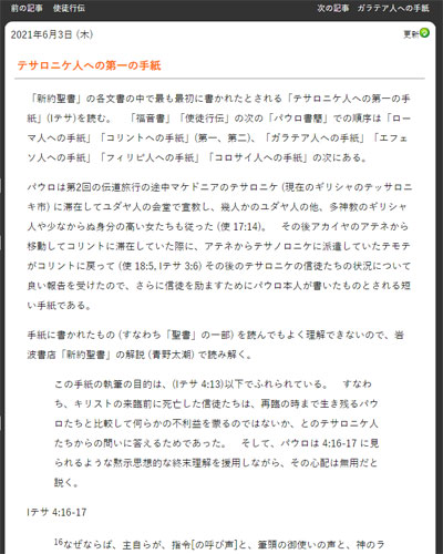 3日(木) テサロニケ人への第一の手紙
