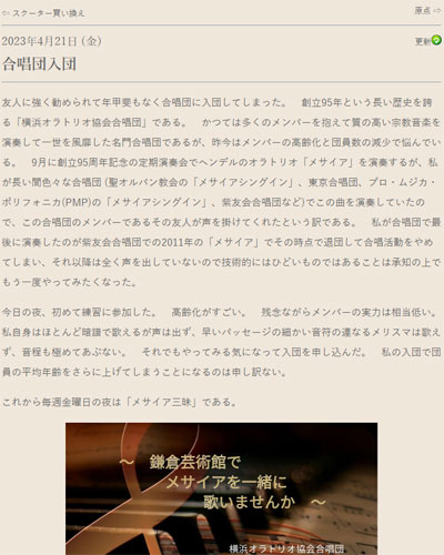 21日(金) 合唱団入団