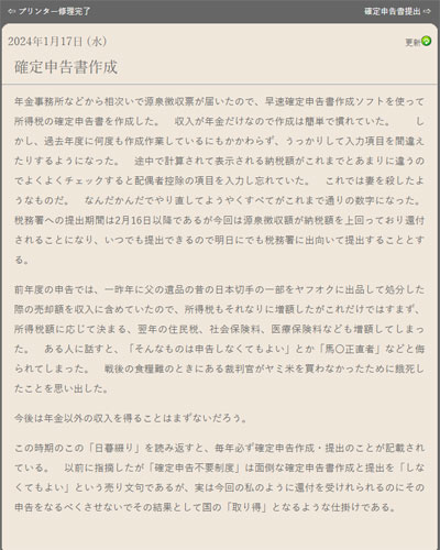 17日(水) 確定申告書作成