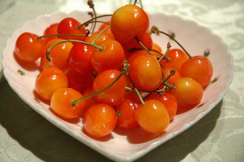さくらんぼ「佐藤錦」 2010年6月30日(水) 山形県の東根から名品のさくらんぼ「佐藤錦」1kgが届きました。 今年は天候は不順で色づきがよくないそうです。 色が付くのを待って収穫・出荷すると痛むので、止むを得ず色づきが不十分のまま出荷せざるを得なかったとのことです。 この春に宿泊した「ひがしねベアフットユースホステル」から送られてきました。