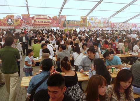 明後日の4日にスキー仲間で行くことになっている赤レンガ倉庫での「横浜オクトーバーフェスト2010」が昨日から始まっているのでのぞいてみました。 ビールやソーセージなどのドイツ料理の店がたくさん出ていますが土曜日なのでどこも行列でした。 自転車なのでビールを飲めないので眺めるだけで出てきました。