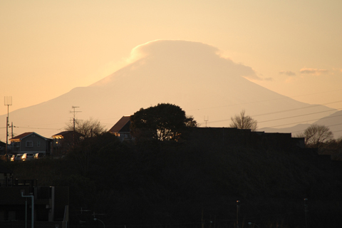 快晴の夕空に輝く雲がぽつんと浮かんでいます。