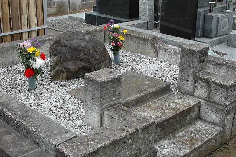 しばらくはその状態でしたが、あるとき母がどこかで手ごろな大きさの自然石を見つけて気に入ったので、それを墓石としたのです。 父と母には「○○家」という考えも、仏もキリストも神もないので、今の今までこのような宗教なしの個人の墓となっています。
