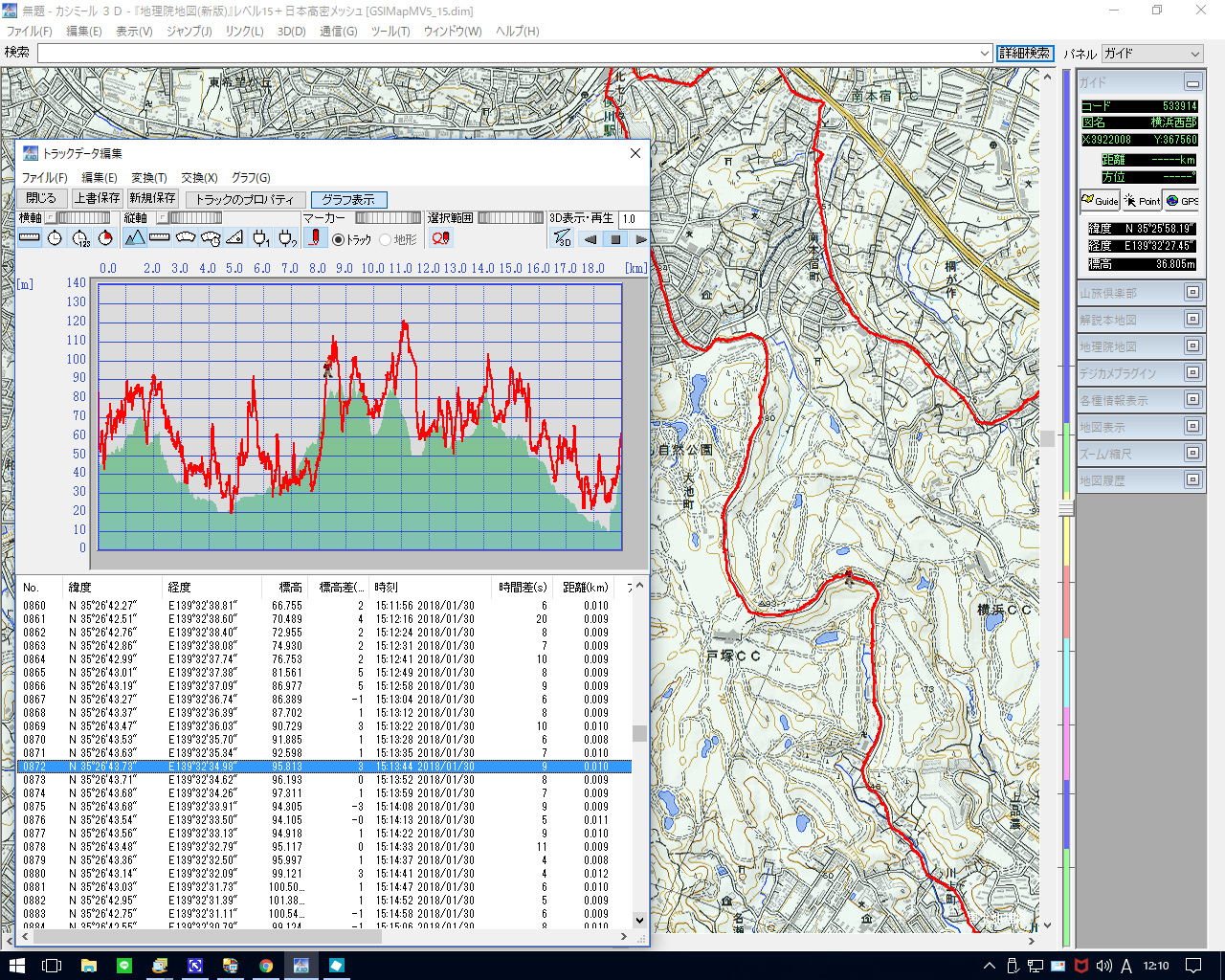 1月30日に横浜カントリークラブから二俣川へ歩いたときのタブレットPCで同じ
