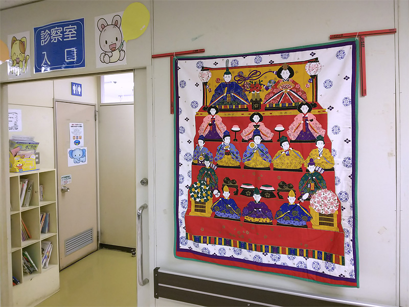 小児科の診察室の入口にはパッチワークの雛飾り。