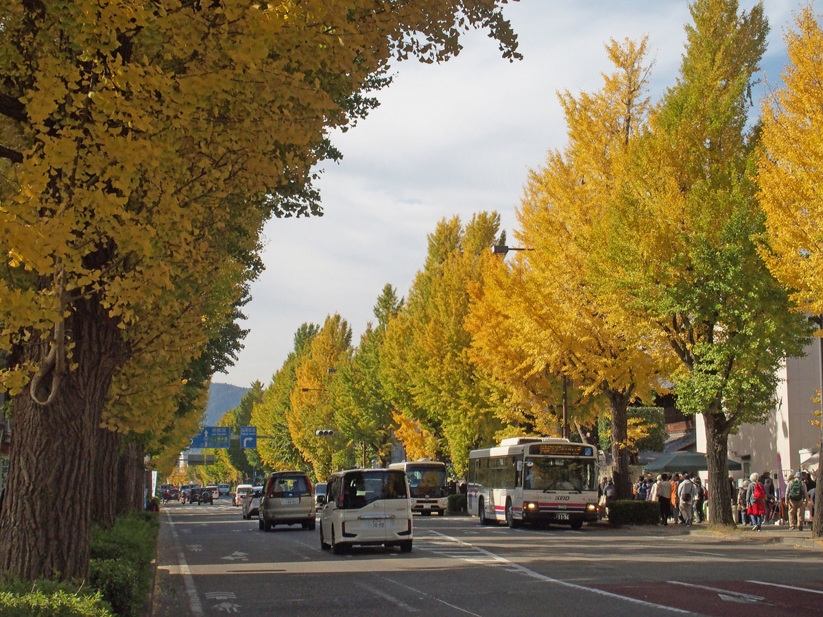 沿いで「いちょう祭り」が繰り広げられている。 高尾山に近い南浅川橋付近から武蔵陵墓地に至る多摩御陵参道で孫が通う幼稚園児の鼓笛隊がパレードするというので見に行った。 イチョウ並木が美しく色づいた甲州街道を西八王子駅から御陵前交差点まで歩いたが、道路の両側には数多くの露店や古物市などが立ち賑わっている。