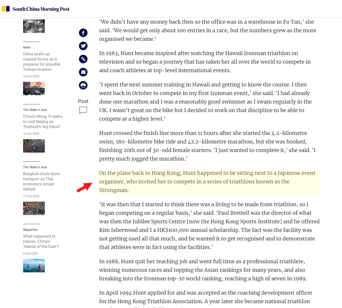 が今どうしているのかが気になって検索したらこんな記事が見つかった。 この記事の日付は分からないが2018年の別の記事では香港トライアスロン協会の会長とあった。