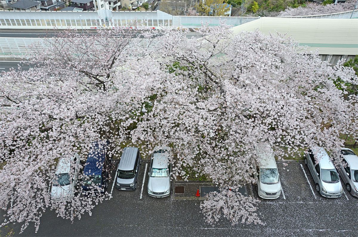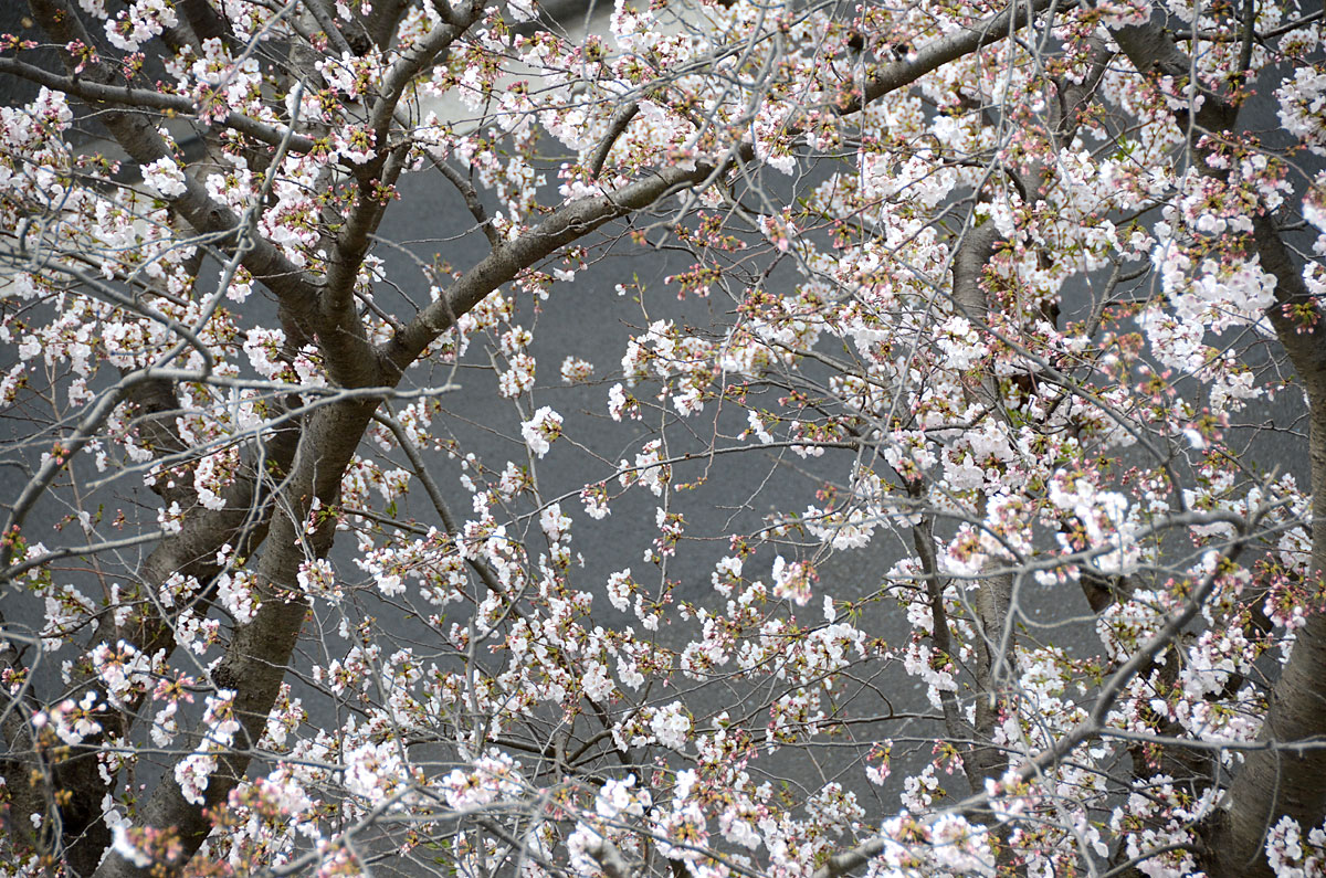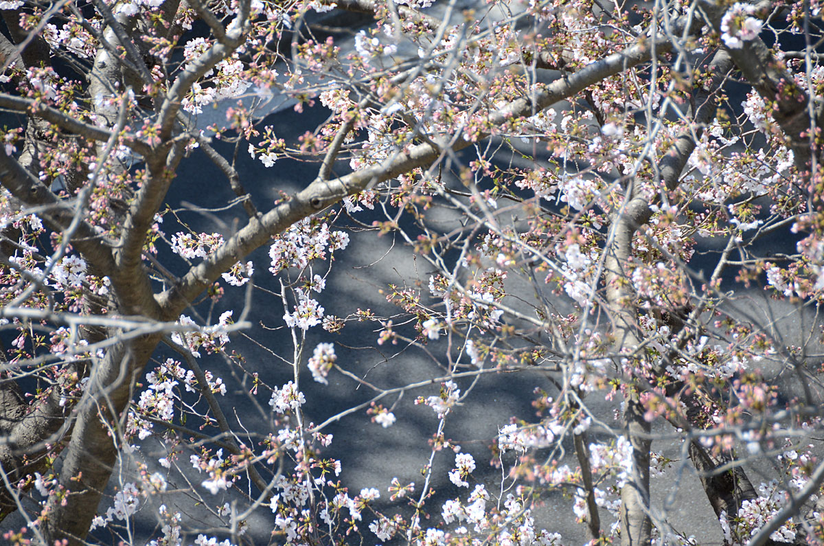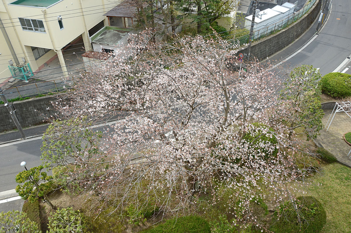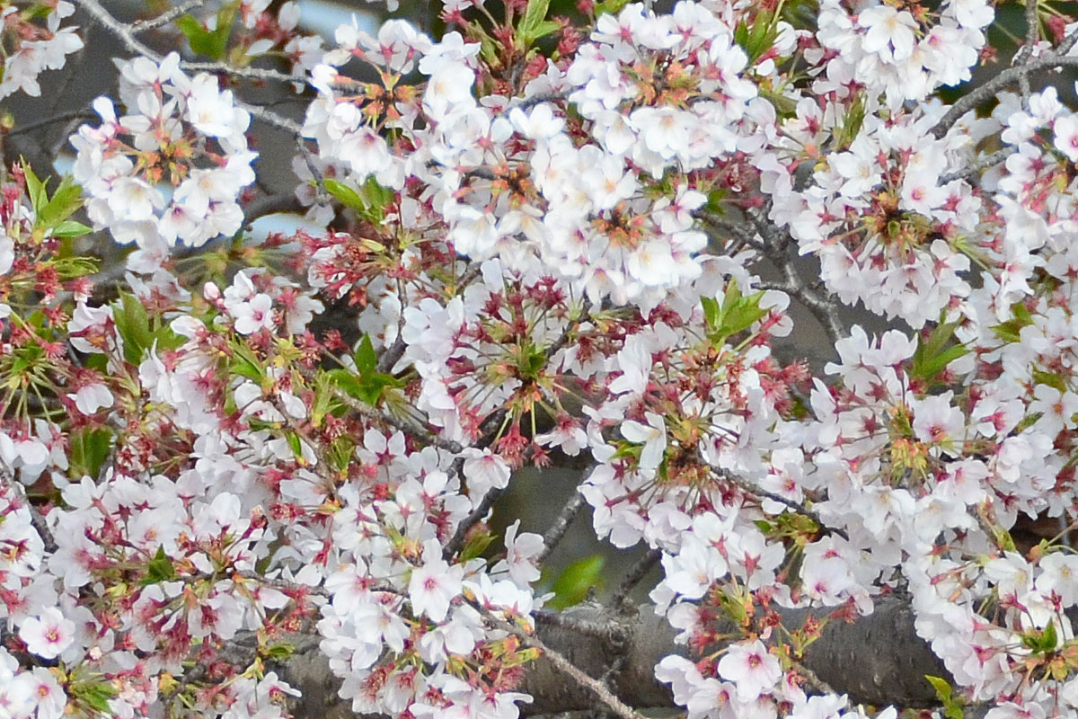 北側の桜の最初に開花した部分はもう葉が出てきた。