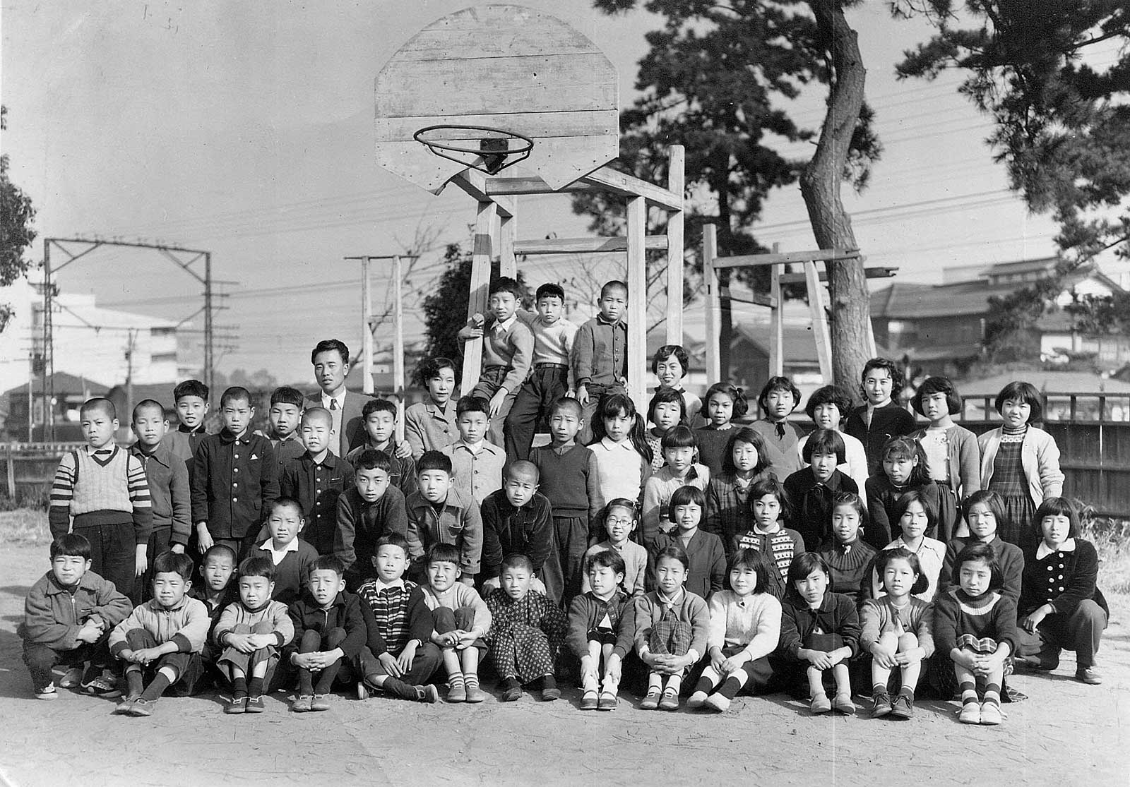 1955年、ほぼ同じ位置で撮った6年4組