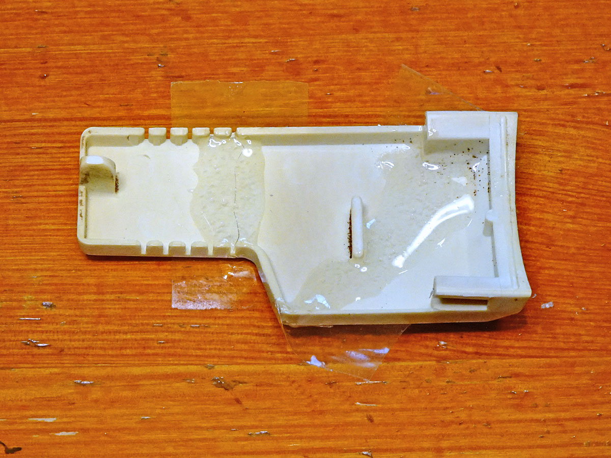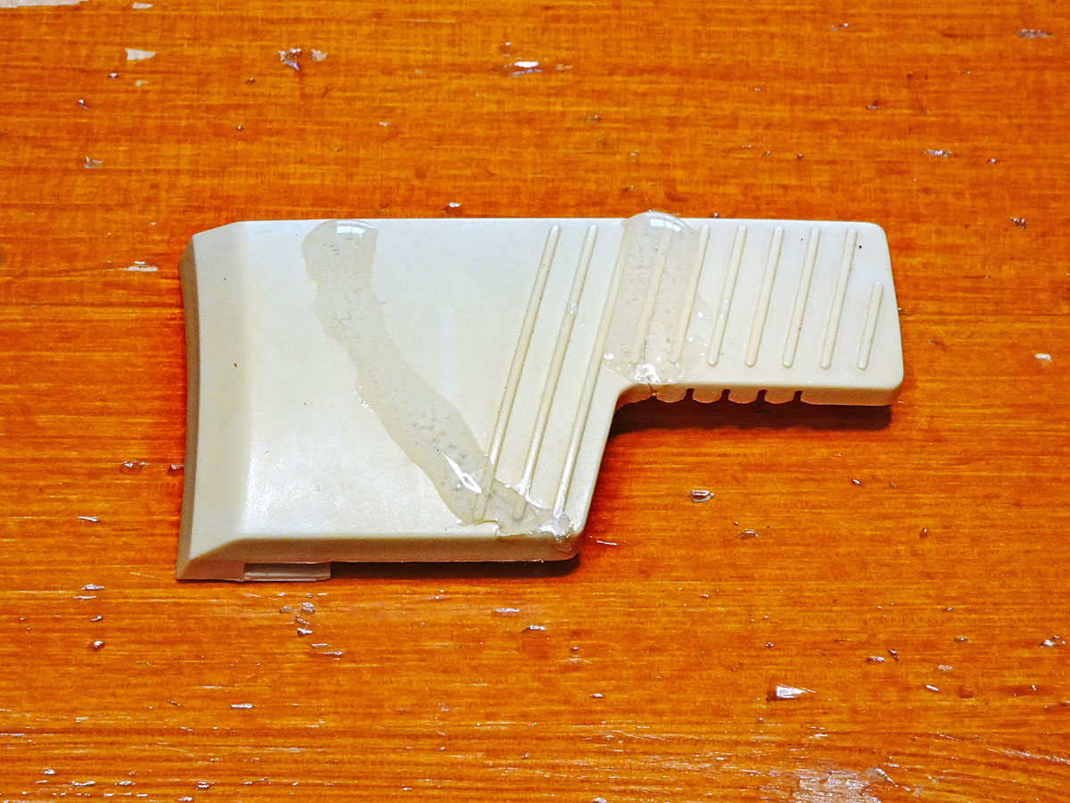 新しいものが配送されるまで待てばよいのだが、これまで使っていたコーヒーミルの破損したプラスチック部品をエポキシ系接着剤で接着してみた。 果たして使えるかどうか。