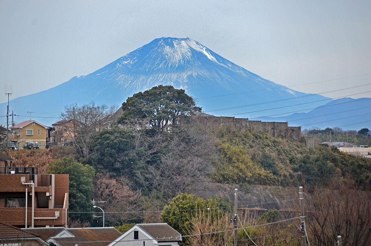 普段は富士山は晴れている日は朝よく見えていても昼近くになると水蒸気の影響で見えにくくなるが、きょうは曇っているのに気温が低いためか昼になってもくっきりと見える。 それに不思議なことにより近くに見えるような気がする。