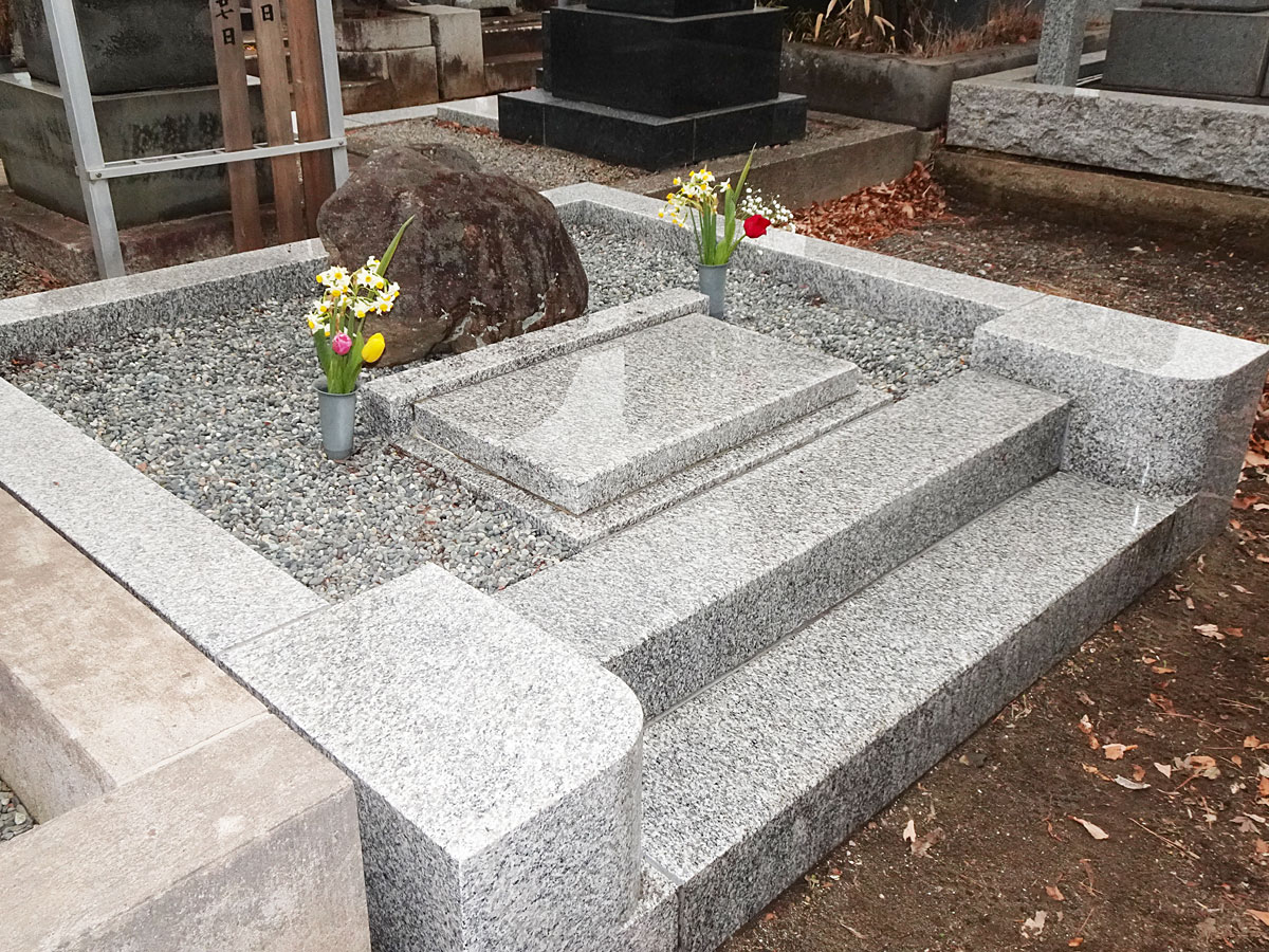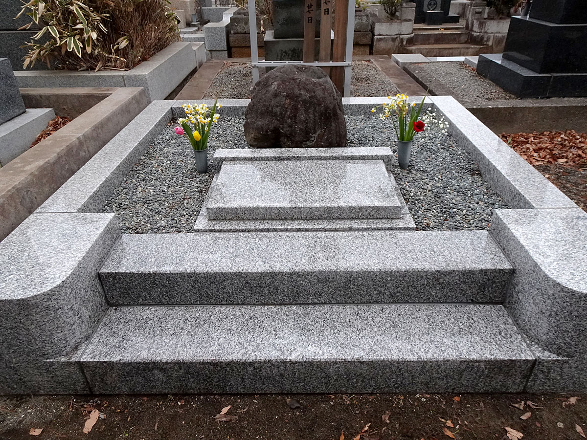 長兄を埋葬するために父が手に入れて(使用権)ずっと更地のまま使用料を払い続けて維持されていた。 1976年に父が死んだ時に母が墓柵を作り墓石を置いた。 その工事の時に掘り返すと地中に唐櫃(からうと)がありその中に骨壺が安置されているのを発見して皆驚いた。 父も母も宗教とか家督ということには全く縁がない(というより拒絶していたようだ)ので母は一般にあるような墓(仏式の家墓)ではなく自分の好みの自然石(庭石として販売されていたもの)を置いた。
