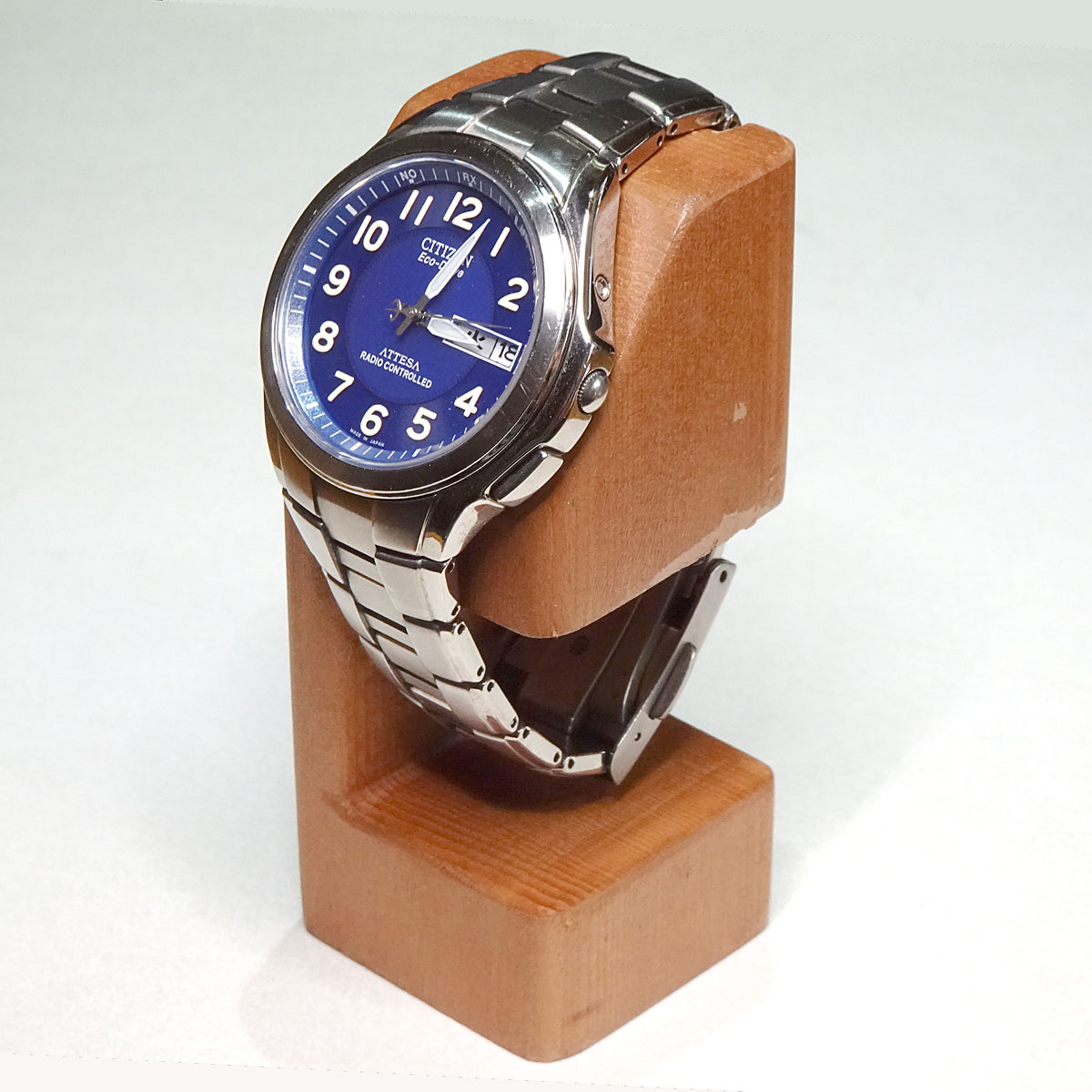 3月14日の日記で腕時計スタンドを紹介したところ鎌倉彫をしている姪 (長姉の一人娘) が柿渋で処理するとよいと教えてくれたのでやってみた。 1週間かけて5回塗り重ねたのでかなり濃い色合いになったが私の好みに仕上がった。 塗料では出にくい渋さが表現できたと思う。