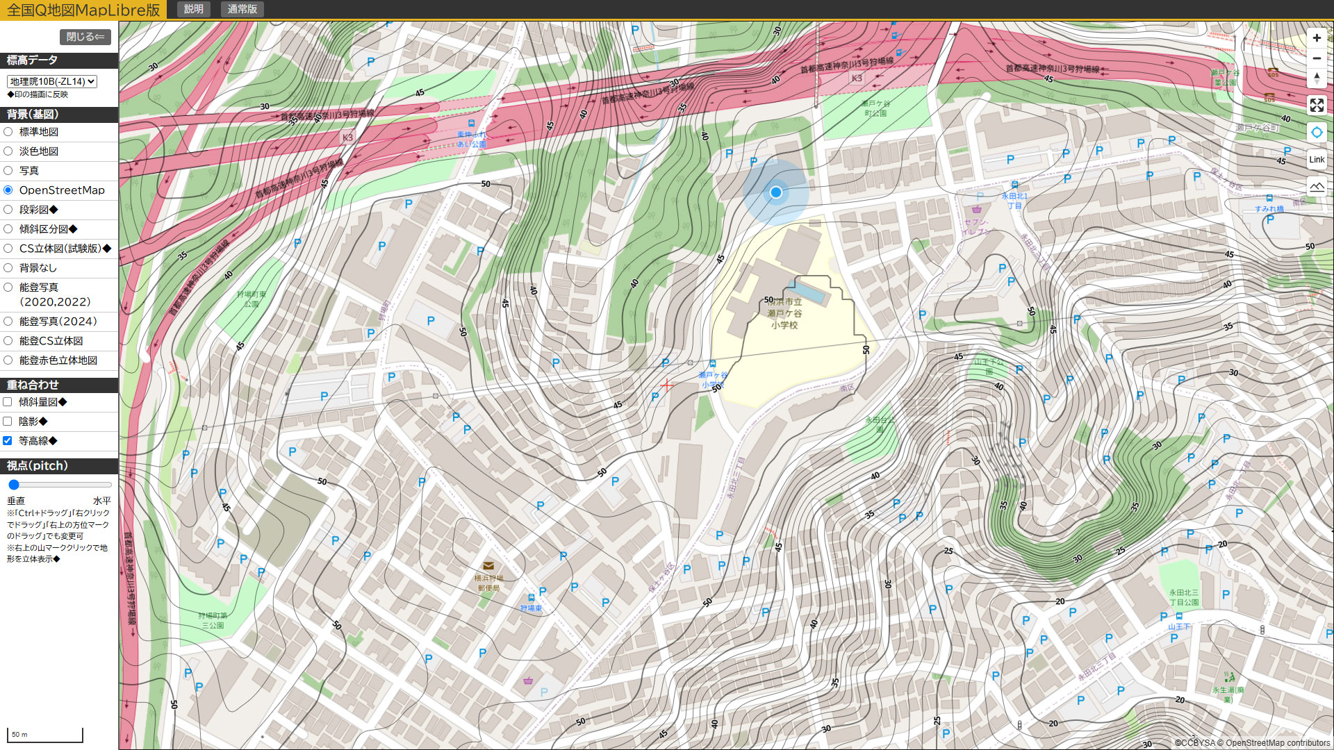 新たに発見したウェブサイト「全国Q地図MapLibre版」では国土地理院だけでなく