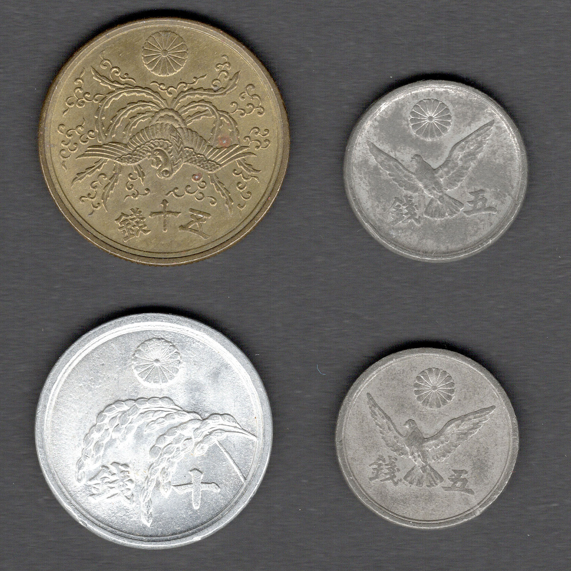 そして我が国では終戦直後にこんな硬貨が発行された。 それまで「大日本」と刻まれているが「日本政府」と刻まれている。終戦直後の混乱でこうなったのだろう。 昭和26(1951)年に発行された新しい10円硬貨は「日本国」と刻まれている。 同じ時に発行された新10円札のデザインは「米国」と見える話題になった。