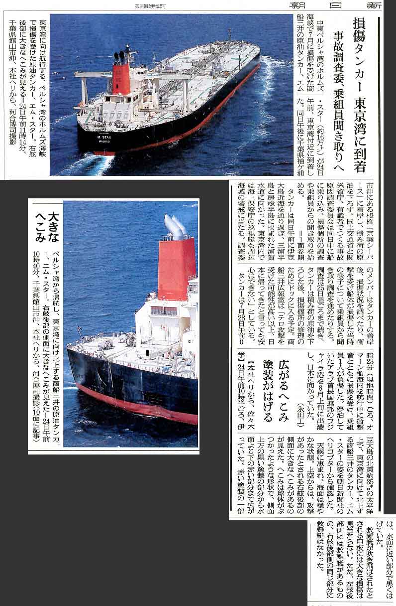 日朝刊の記事 「帰航タンカー 深い傷」へ