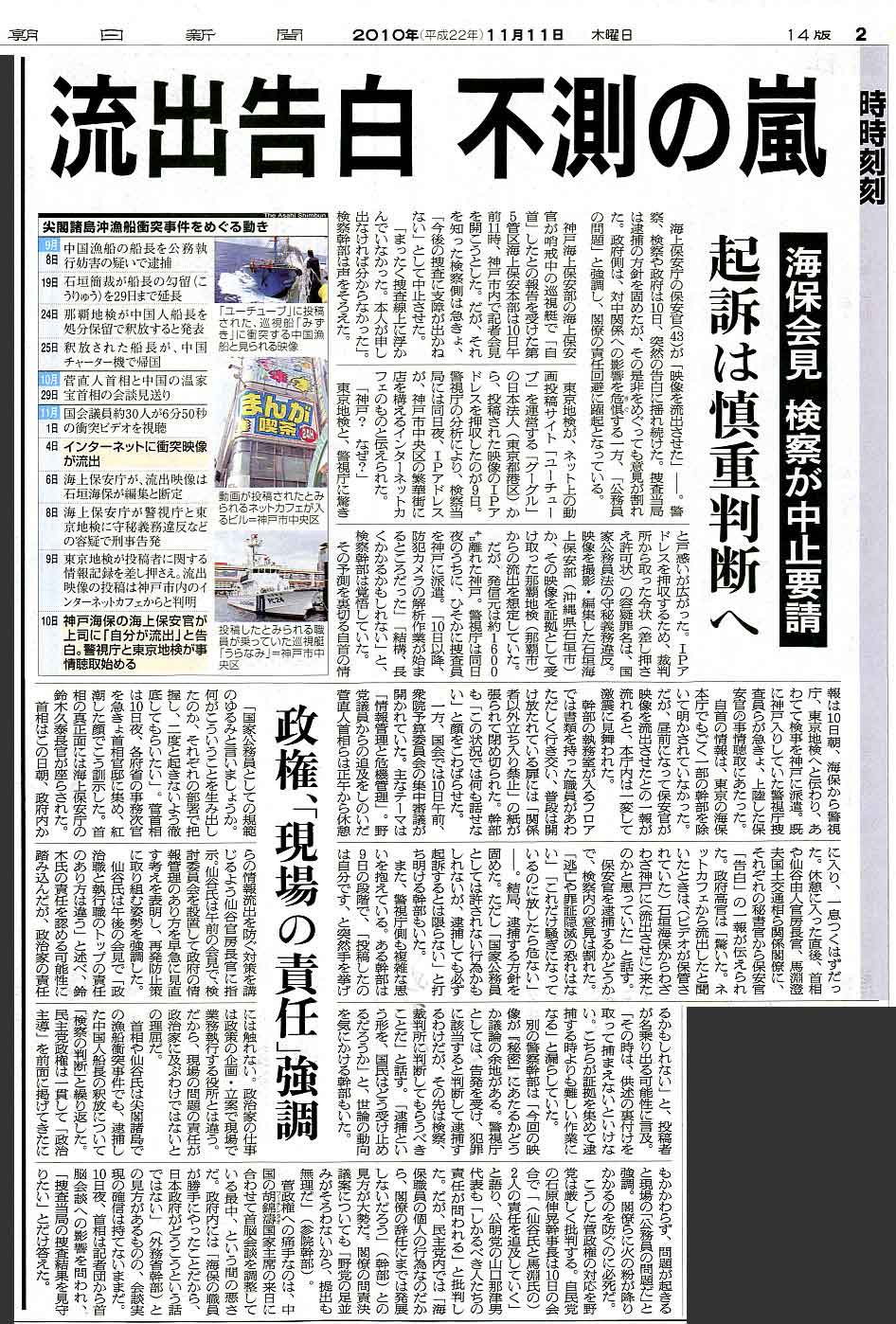 20101111日 朝日新聞 朝刊 東京本社 24