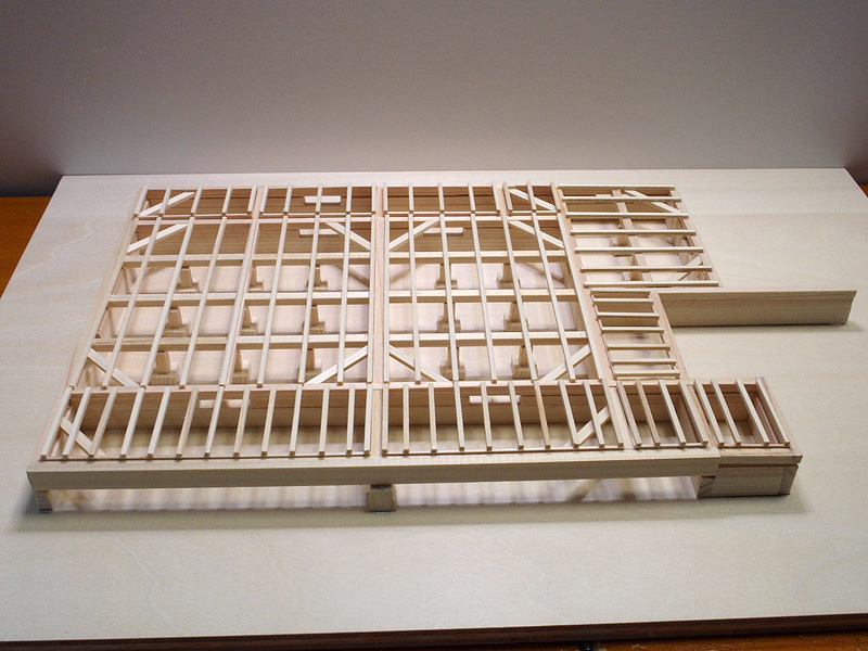 土台・大引き・火打ち土台・根太のアッセンブリーを基礎の上にを置く