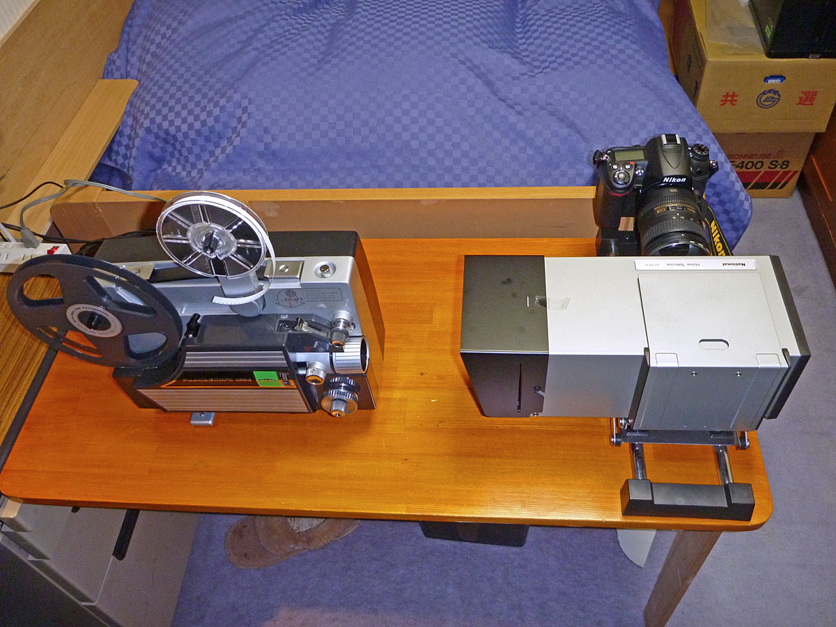 8ミリフィルム映写機とテレシネ装置 (右側手前)