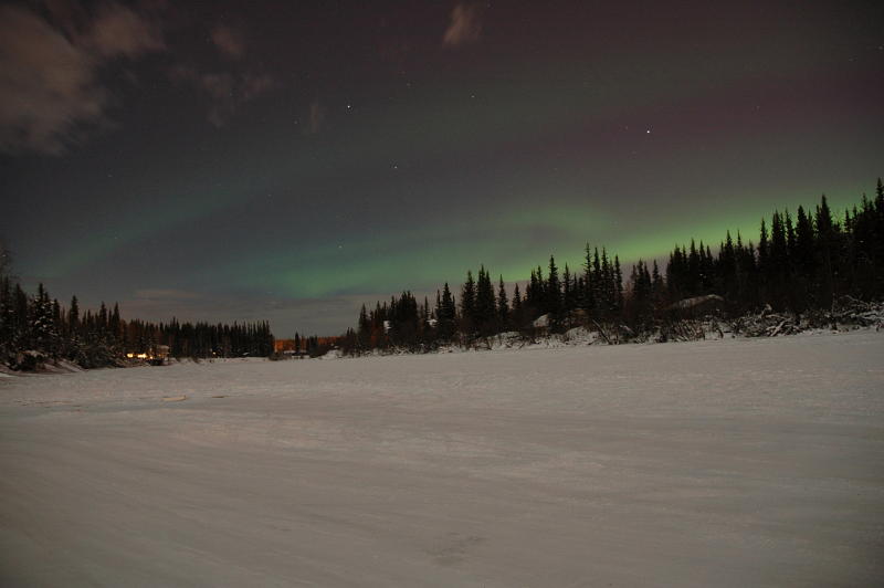 初めて見たオーロラ ロッジ裏の氷結したチナ川上から