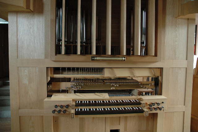 正面 鍵盤正面、ウィンドチェスト前の隠し板は外してある |
