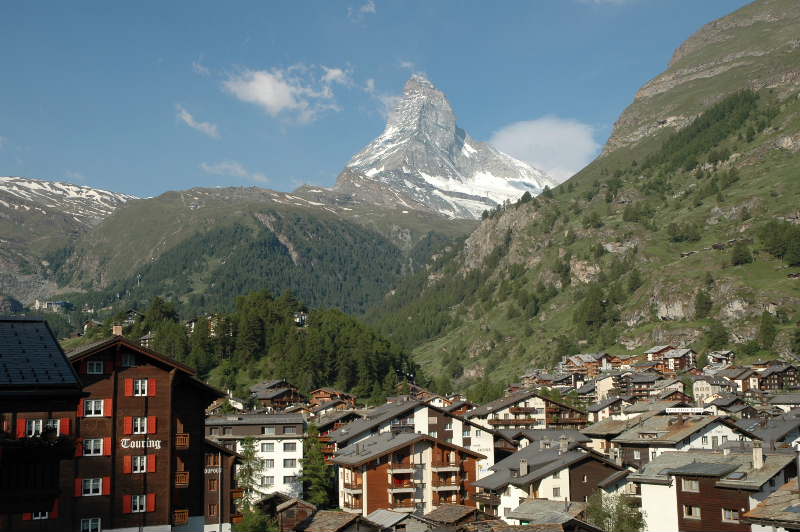 2004年6月から7月にかけて10日間のスイス観光旅行をした。目的はただ、美しい山々と湖を見ること。スイスアルプスの名峰、マッターホルン、アイガー、ユングフラウ、それにフランスのモンブランを駆け足で巡る。東部イタリア国境近くのリゾート地であるサンモリッツ、首都ベルンの古い町並み、それに国際都市ジュネーブも。 |