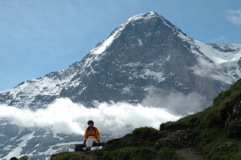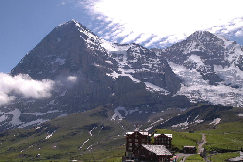 憧れの地、クライネシャイデック(小さい峠の意味)からアイガー、メンヒ、ユングフラウの名峰を望む |