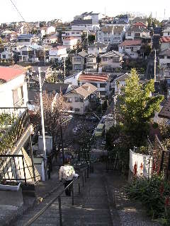 とても寒いがこのような日に近所を散歩するのも悪くないので、夫婦そろって南の永田の方角へ歩き出す。目にするものをああだこうだといいながら。 去年の夏に見た汚い町内会の資源・ごみ集積所は正月明けということもあり、どこもこざっぱりと片付いて期待はずれ。2005年8月の日暮綴りに掲載した記事に添付するつもりでその汚れている証拠写真を撮ろうと持ち出したカメラの出番はなかった。 永田村の古い土蔵も残されていた民家は潰されてその跡が整地されて広い貸し駐車場になっていた。新年の朝日新聞に大きく取り上げられていた、緑の蔦のからまった煙突の「永生湯」の看板には「えいせいゆ」と振り仮名が振ってあった。「ながいきゆ」ではないことが判明した。相棒が弘明寺(ぐみょうじ)へ行こうというので、井土ヶ谷を回らないで近道で行って見ようと、南へ南へとその方向を目指すが、今にも崩れそうな、というよりすでに崩れてしまっている土の斜面わきの道に沿っていくうちに、正面の小山に阻まれて行き止まり、行きつ戻りつするうちに大きなマンションへ登る道が出来ていた。登りきると明るい丘の上にでた。南の方に別の谷が広がっているので、突 そのすごい階段の上から谷の向こうの反対側の斜面にやはりまっすぐに上る階段が見える。弘明寺は真南の方向にあるから、この反対側の階段を登ってその丘を越えないとならない。降りて又登る。運動と さて階段の上に広がる次の丘にはまた新しい住宅地が広がるが、日当たりの良い頂きには今度は墓地がある。墓地があるなら寺もあるはずだから、墓地の脇の小道へ入るとその道は墓地のメイン階段となり、墓地はずっと下の方へ続いている。墓地の西側の竹林を通して崖下の別の小さい谷が見える。相棒が気がついた、「そうよ、これが5階のYさんのTちゃんが通っていた幼稚園のお寺よ。」 この道路はかつて徒歩通勤で見慣れたところであるが、「レッドロブ 山門の真ん前に違法駐車して老夫婦が乗り込んだBMW730はセルモーターは回るもののエンジンが掛からず立ち往生していた。 ここまで結構歩いたので疲れたのでそれを横目に、山門前の Doutor カフェにて一休み。BMW730夫婦も Doutor に入ってきて私たちのすぐ後ろでレスキューに携帯電話で「いやー、10年も乗っていますから」。 弘明寺商店街。相変わらずの賑やかさにほっとする。昔からの店が多く残っている。店の奥で魚肉を練っている揚げている蒲鉾屋さんから香るあの懐かしいさつま揚げの匂いにつられて買い込む。会社出入りで贔屓のカメラ屋の「明治堂さん」(Sさん)はついに写真用品の販売とDPEをやめてスタジオ専門になっていた。2軒隣の観音橋のたもとの角にDPE専門の店が出たのがいけなかったのだろうか。大岡川に掛かる屋根のある橋(じつは商店街のアーケード)で有名な観音橋には横に遊歩道専用の新しい橋が作られていた。桜の季節は賑わうのだろう。相棒がどうしても買いたかったキムチ屋さんと思しき店は閉まっていた。40年前に独身寮にいた私がここで始めて「冷やし中華」を食べて感激した中華料理の店はどれだったのだろうか。相棒が商店街の鎌倉街道口に評判の「いさみ鮨」という寿司屋があるというので覗いてみると確かに安い。丁度出てきた3人連れは支払った男が「いやー安かった、よかったー」と大喜び。この寿司屋の並びにあったミシン屋と肉屋はどうなったのだろうか。 相棒の「歩いて帰る?」に一応許諾の意思を示すものの、再び商店街を通って弘明寺駅まで来たところで弱気になり、130円払って隣の井土ヶ谷駅まで電車に乗る。両駅に止まる普通電車はめったにこないと思い込んでいたのに意外にもすぐ 永田交番近くの駐車場でこの懐かしくも珍しい看板が残っていた。文章が書いてあるところは野暮であるが、今は仕方ないか。 |